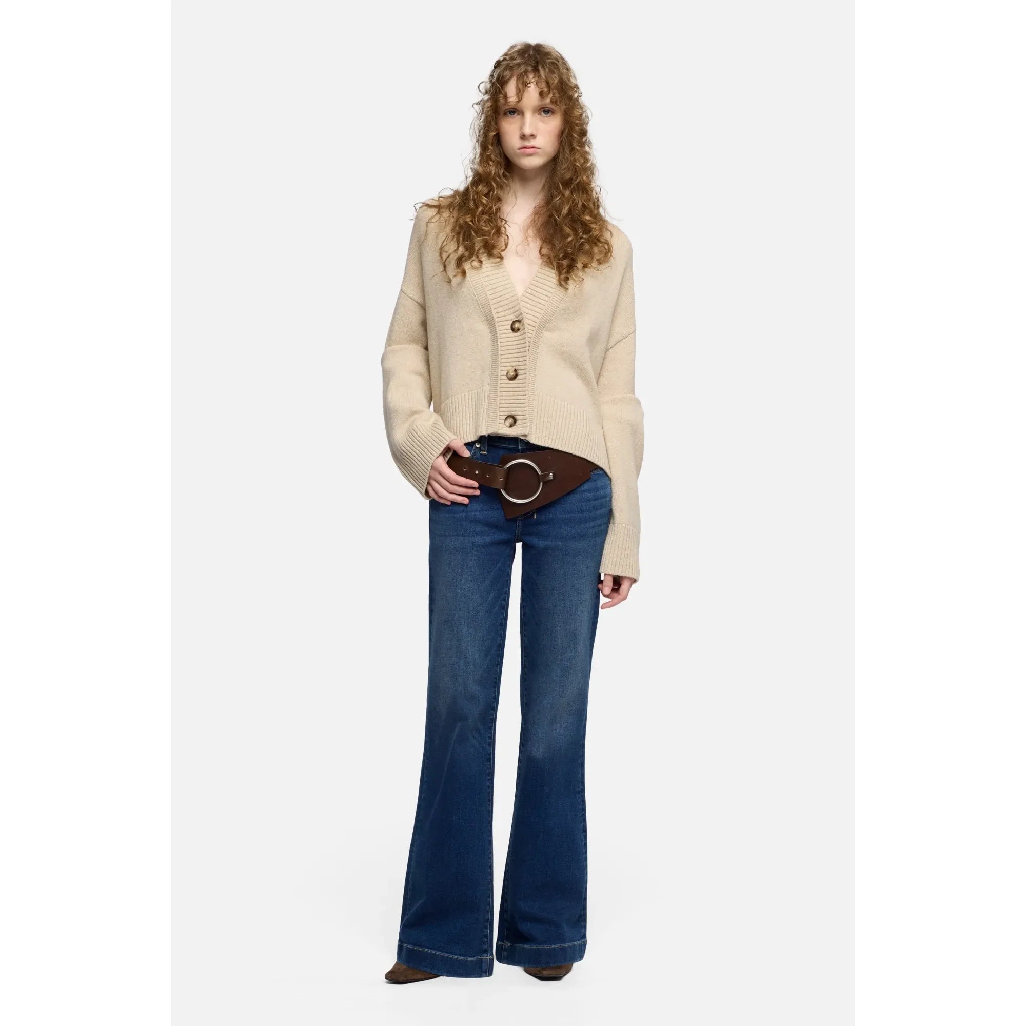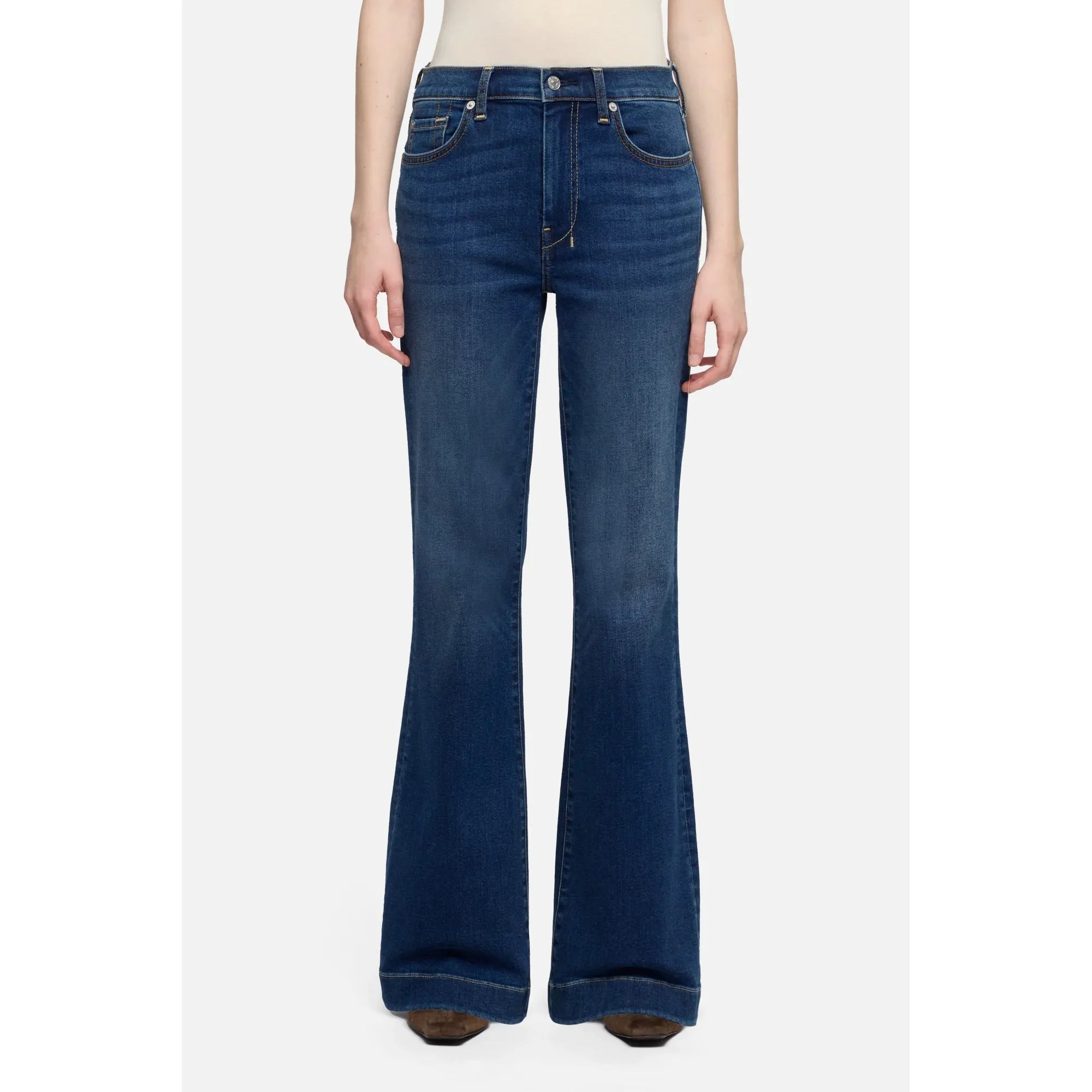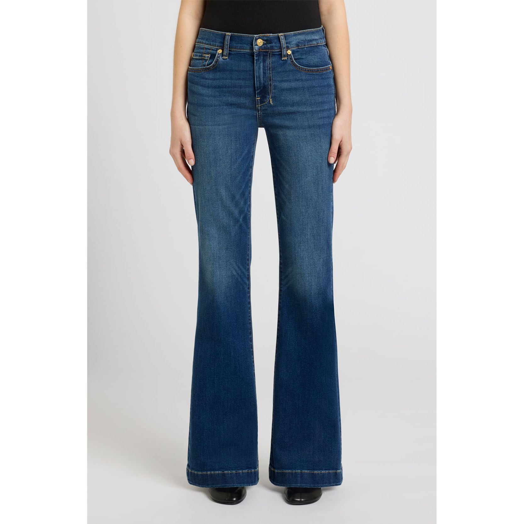 Fits like: A mid rise flare that contours through the waist and hips before opening into a subtle flare — creating a long, lean silhouette. Finished with a tailorless inseam for a perfectly effortless length.
