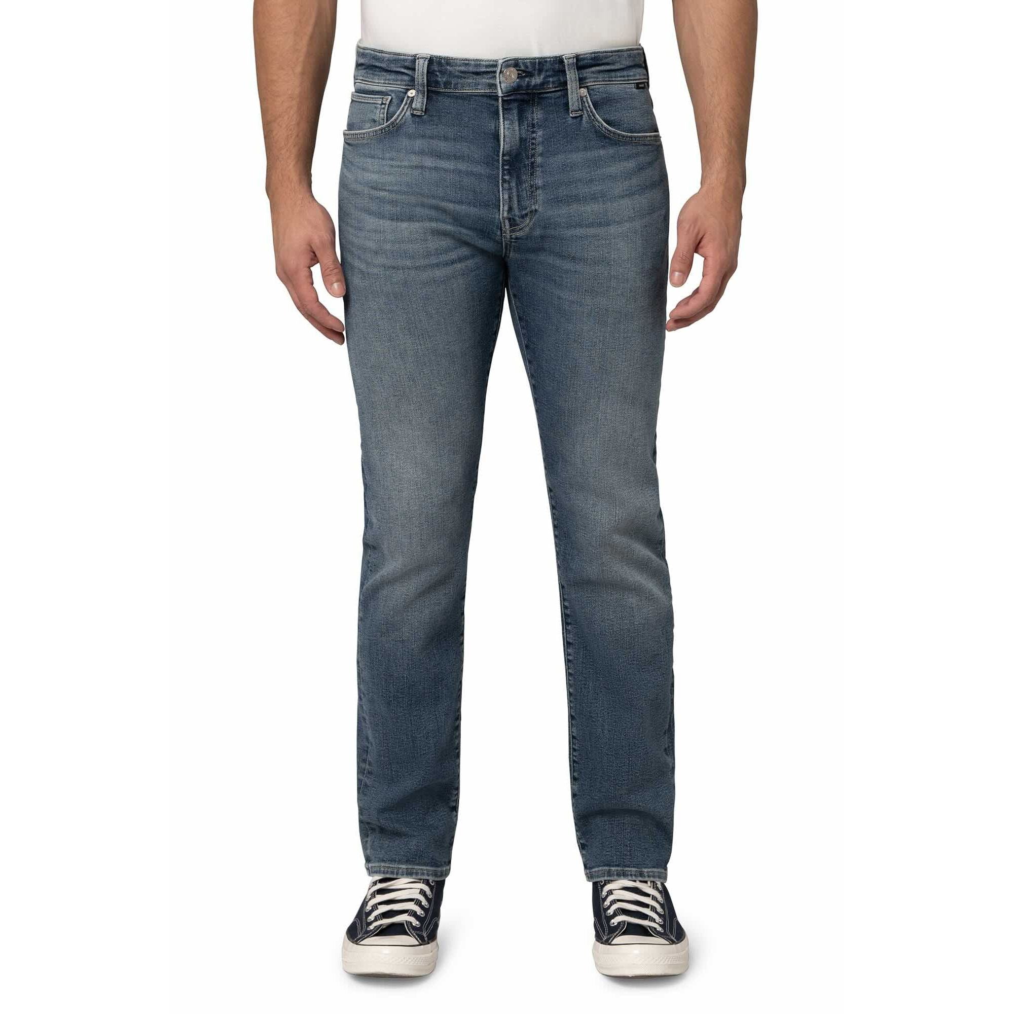 Designed with a comfortable regular rise, the Jake jean features a modern silhouette that fits slim through the hip, thigh, and leg opening. Its streamlined shape offers effortless versatility, making it easy to dress up or down. This pair comes in a classic dark wash with subtle whiskering and a perfectly worn-in finish for a timeless, lived-in look.
