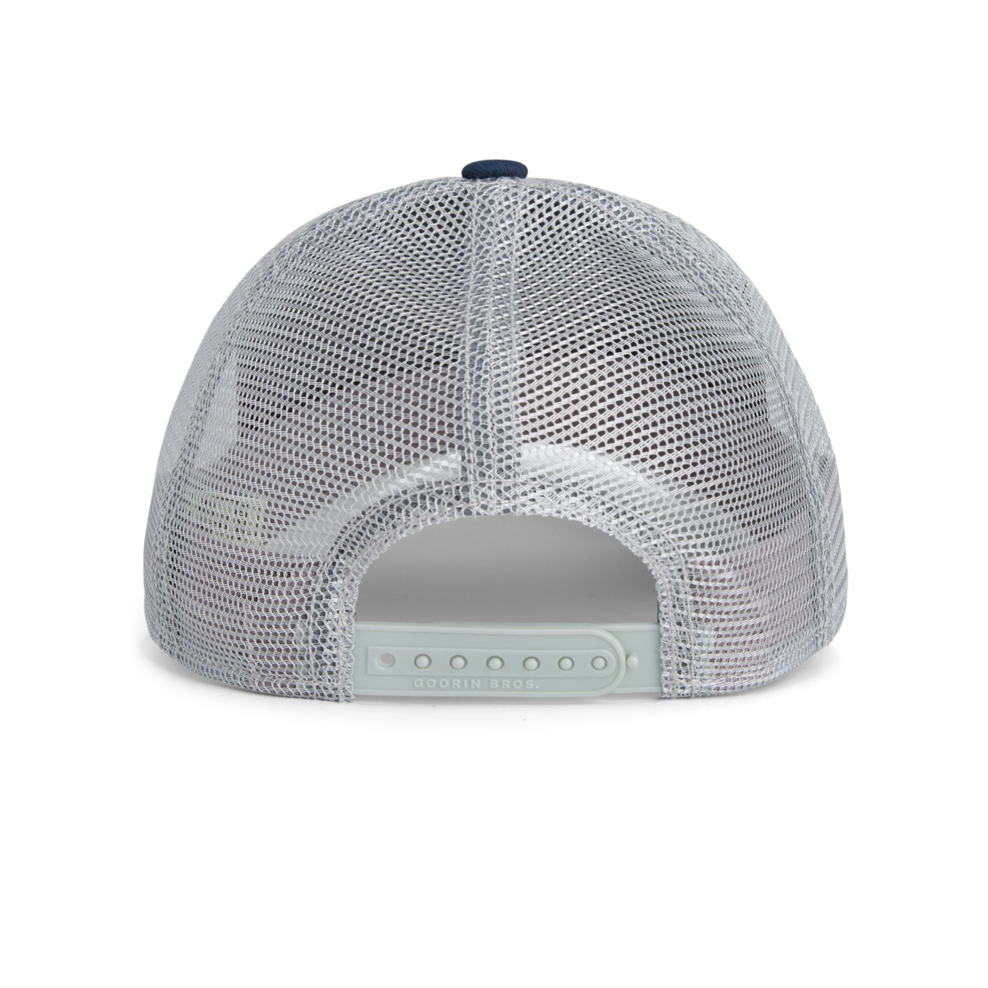 Make a bold statement with the Goorin Boyz Trucker Hat, featuring a striking grey crown and navy brim highlighted by sharp white contrast stitching. Adorned with a pair of spirited ponies, this hat adds a daring edge to your look while offering breathable comfort and a perfect fit. Ready to turn heads wherever you go.