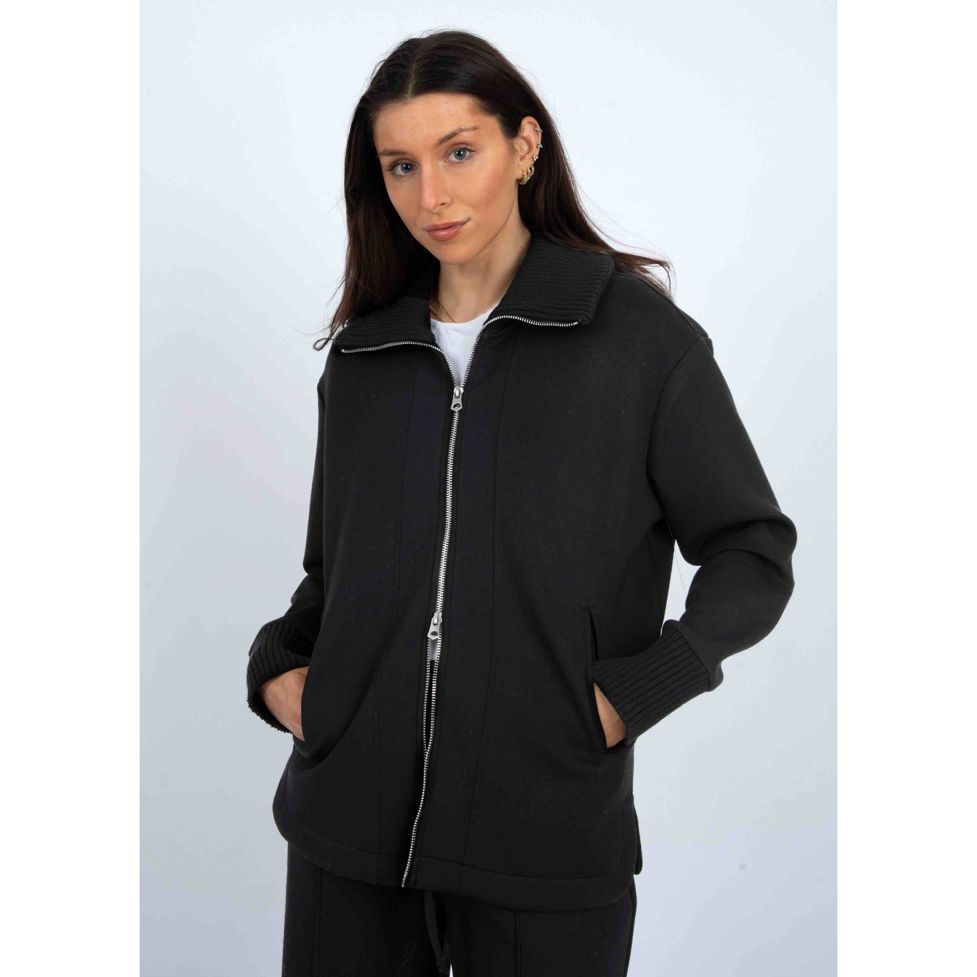 Elevate your layering game with the Judia Soft Knit Zip Sweater, crafted for effortless versatility. This oversized silhouette features a refined two-way zipper for customizable styling, while ribbed detailing at the collar and cuffs adds polished structure. Functional front pockets complete the design, merging comfort with understated sophistication. Perfect for transitional seasons and modern wardrobes that value both ease and elegance.