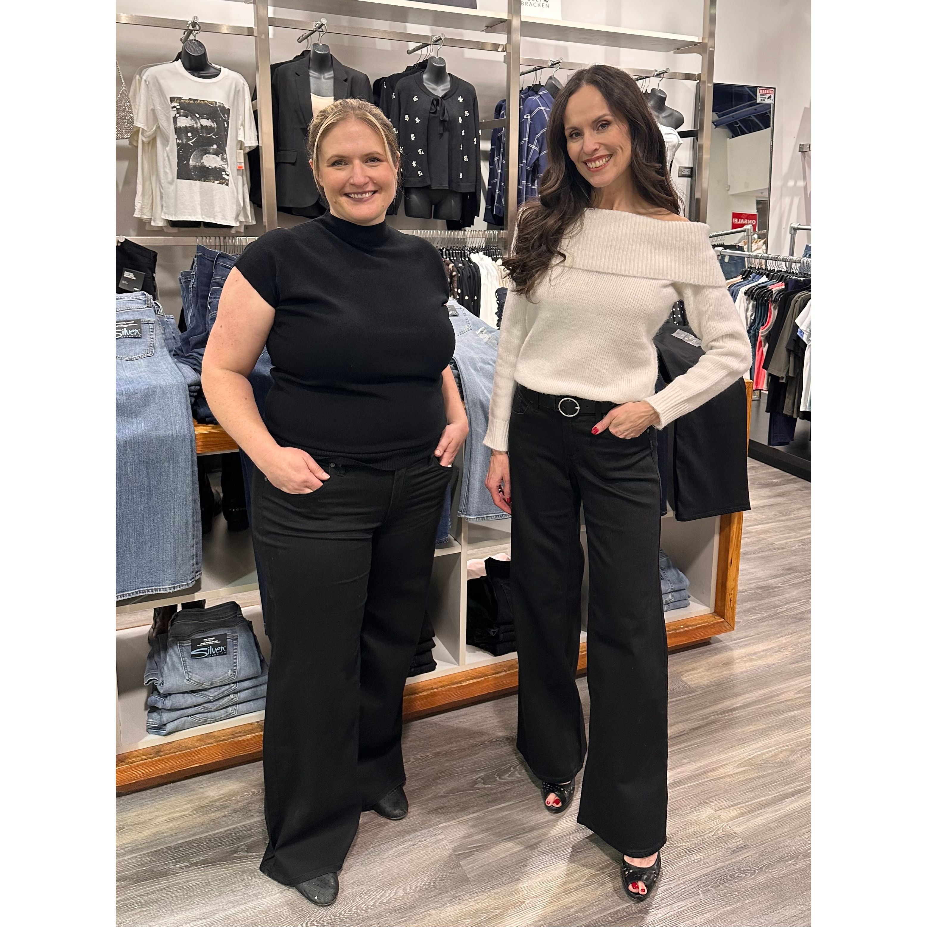 Shown in sizes 34/31 and 26/33 on Vicki and Sharlene