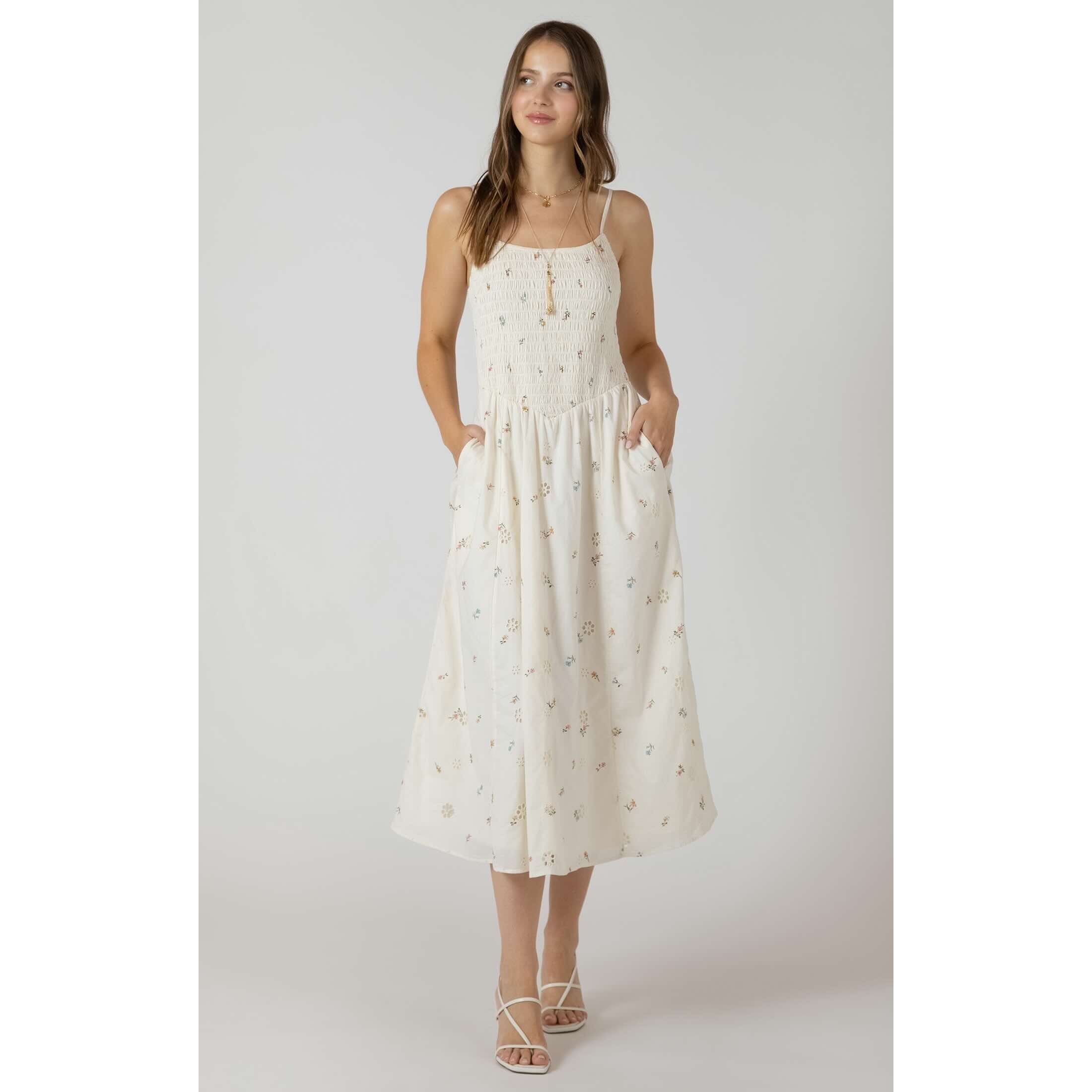 Dex Smocked Detail Midi Dress features a flattering smocked bodice that offers a flexible, comfortable fit and a flowing midi skirt that moves effortlessly. Easy to dress up or down, it’s a versatile piece perfect for everything from daytime outings to evening events.