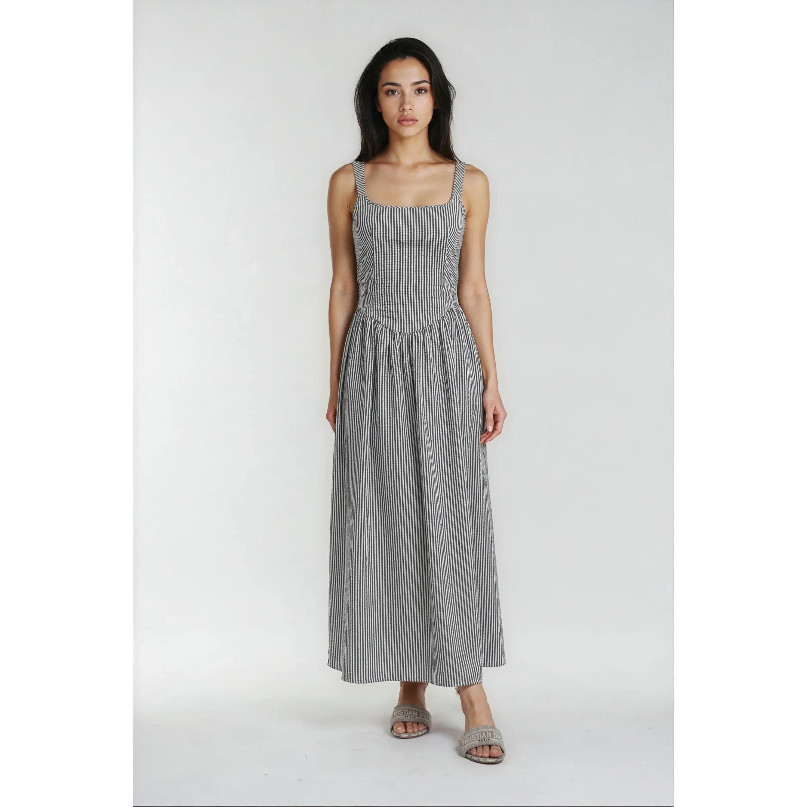 The Jules Tie Back Dress brings effortless sophistication to your everyday rotation. This black and white striped crepe Bengal blend features a charming tie back that creates movement and visual interest with every step. Versatile enough for brunch or the boardroom, it's a timeless piece that transitions seamlessly from day to night. Classic stripes paired with thoughtful tailoring make this dress a wardrobe essential that works as hard as you do.
