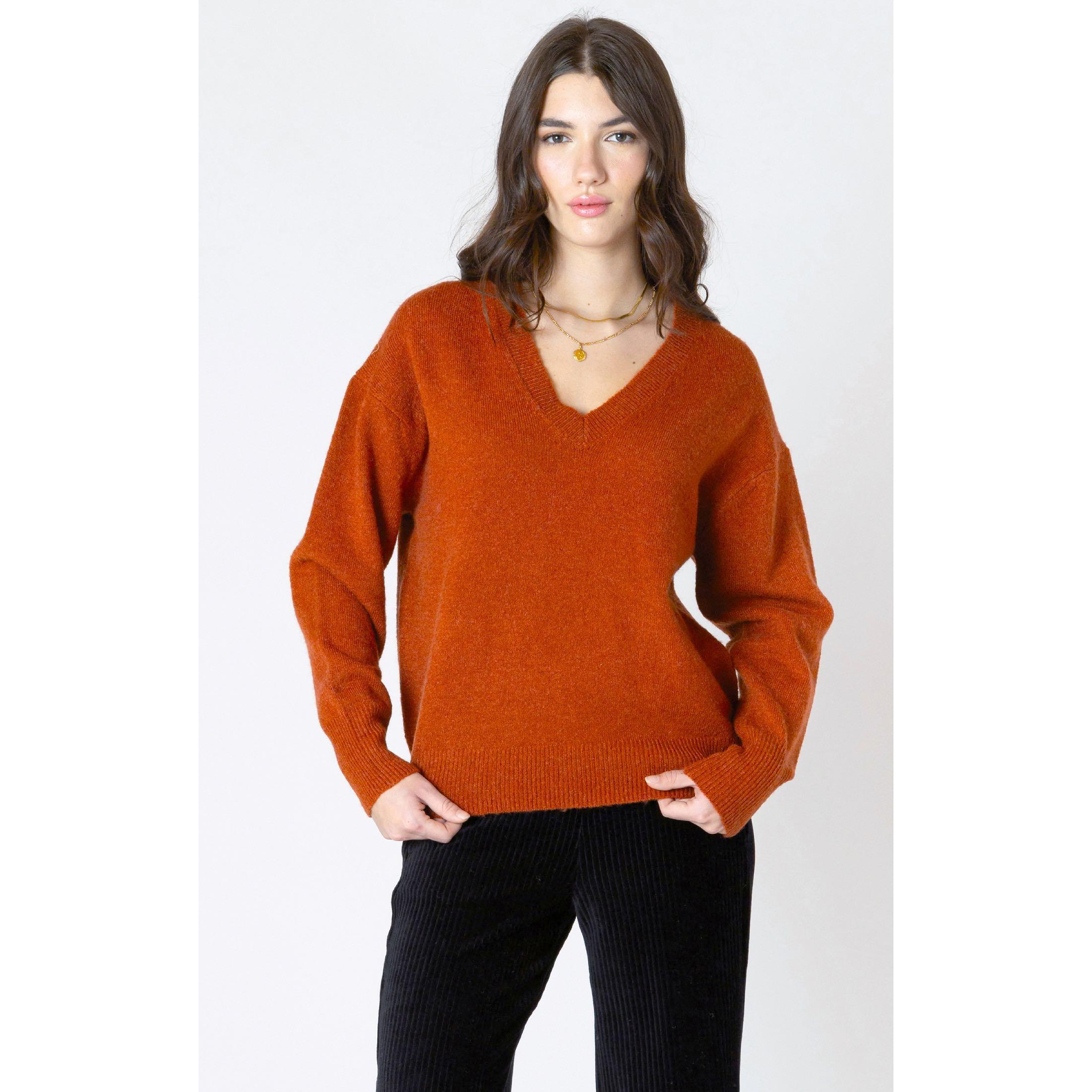 Cozy up in the Dex Soft Touch Sweater, featuring a flattering V-neck and long sleeves perfect for crisp autumn days. Its warm hues mirror the vibrant colours of fall leaves, making it a playful and stylish choice to brighten your seasonal wardrobe.