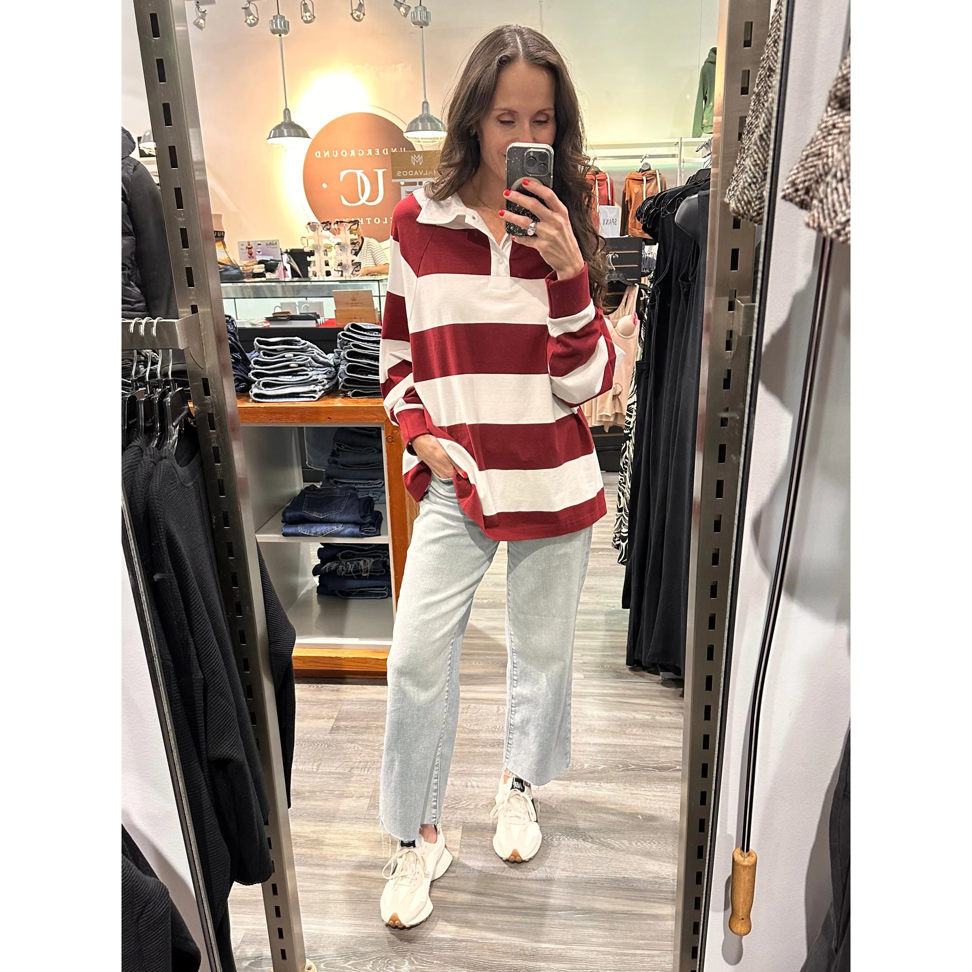 Embrace bold comfort with the Brunette the Label Rugby Shirt. Inspired by slow countryside afternoons, this 100% cotton rugby polo redefines casual cool with its oversized fit and wide silhouette that skims just below the hips. Ribbed cuffs and a button-up collar add classic flair, while fresh new colors make a daring statement. Effortlessly pair it with your favorite pieces and stand out in relaxed, confident style.