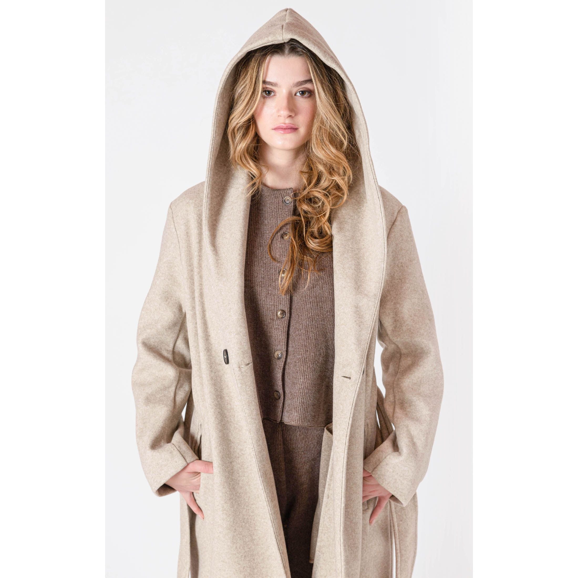 Wrap yourself in cozy charm with the Room 34 Belted Hooded Coat. This long, belted coat features a playful hood and a functional front button closure, making it the perfect companion for cooler days. Stylish yet practical, it keeps you snug while adding a fun twist to your outerwear game.