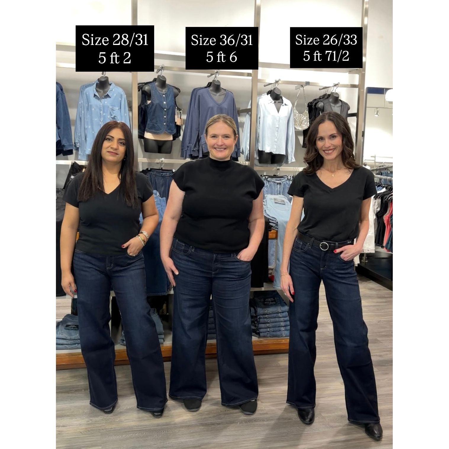 Suki by Silver Jeans Co.™ reshapes your curves with fearless style. The Wide Leg in Hollen boldly embraces your hips and thighs, sculpting a striking silhouette that demands attention. Mid-rise and contoured waistband guarantee a flawless, gap-free fit—comfort meets confidence in every step. Make your statement with a silhouette that’s unapologetically you.