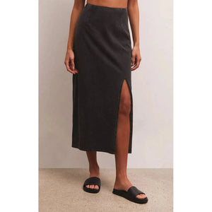 Get ready to show off your fun and feminine side with the Z Supply Shilo Knit Skirt! Made with our signature soft cotton jersey fabric, this chic skirt features a high slit for a flirty touch. Perfect for pairing with our matching top for a stylish set. (Legs for days not guaranteed).